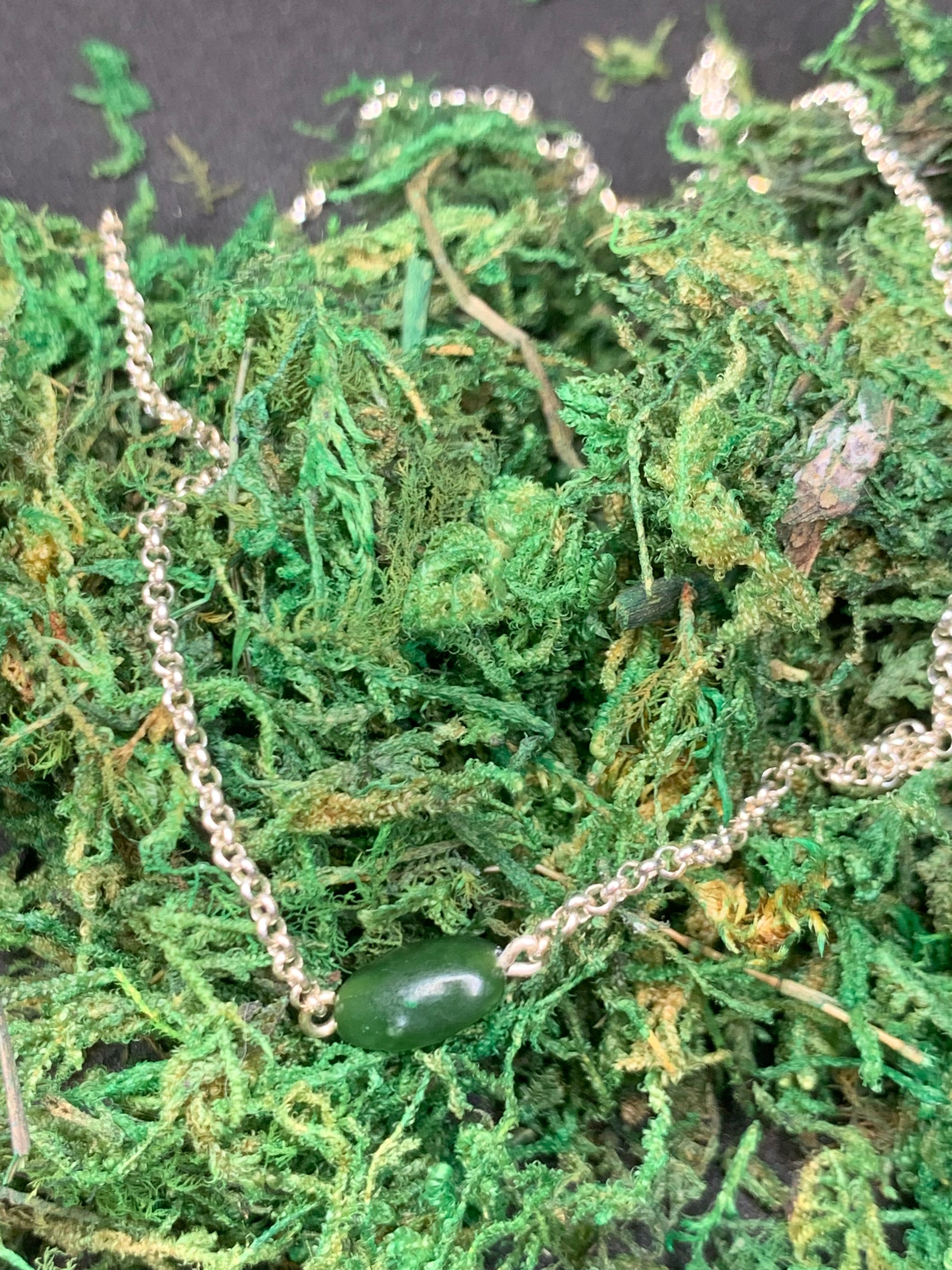 Jade bead on a Sterling Silver chain.